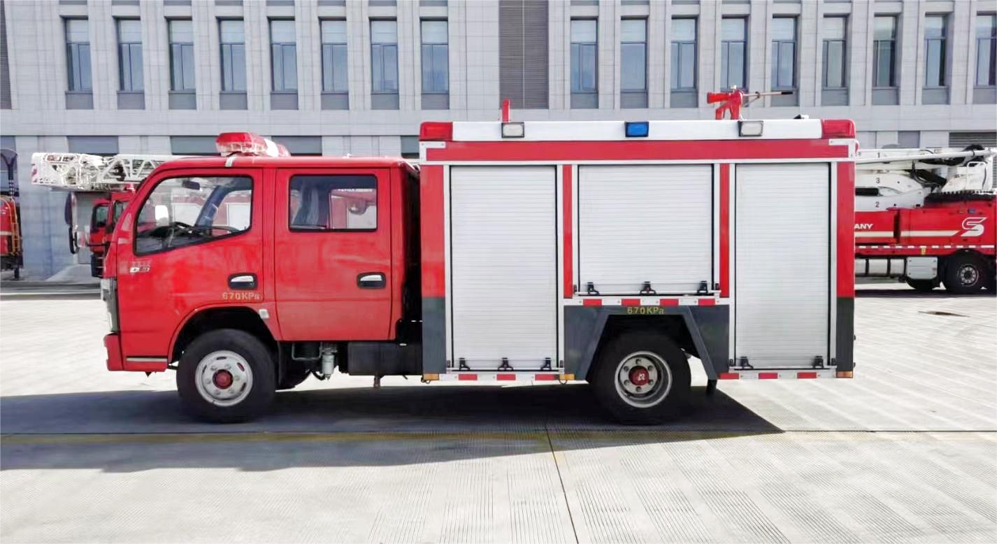 东风国六2-2.5吨消防车,水罐消防车或泡沫消防车可选,采用东风EQ1075DJ3CDF底盘改装而成。整车由消防员乘员室和车身两大部分组成,乘员室为原厂双排,可乘坐2+3人,该车有内藏罐或外露罐可选,车身前部为器材箱,中部为水罐,后部为泵房。载液罐体为优质钢材,载液2000~2500kg,装备了上海茸申消防设备有限公司生产CB10/20型低压车用消防泵,车顶安装成都威斯特消防机械有限公司生产的PS20型车用消防炮,射程≥45米。该车最大的特点是载液量大、操控性好、维修简便。可广泛应用于公安消防队、工厂、企业及社区、码头等场所,扑救一般物质火灾。
